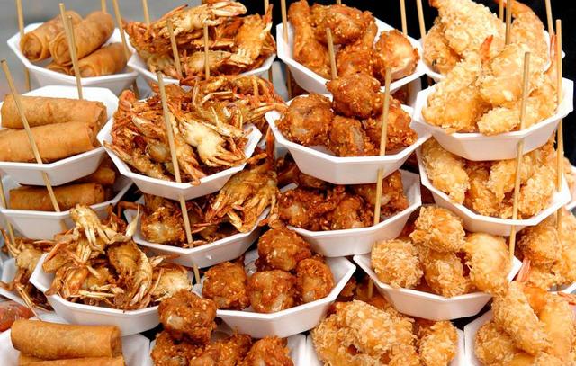 泰国的路边摊也超好的,街边的炸肉串和炸海鲜也要必吃!口味很独特。炸海鲜特别的脆。还有路边的泰式炒饭,里面的海鲜的材料都是超大份超丰富的。